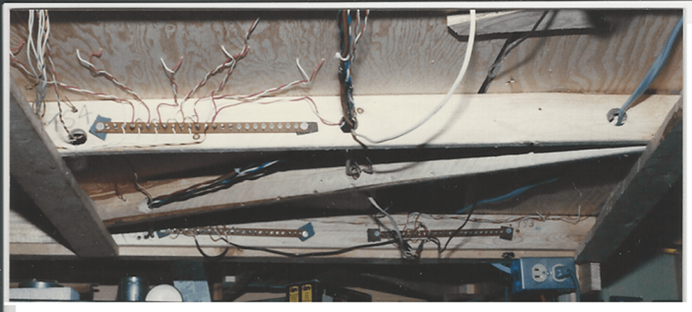 While I was readying this work for the printer, I discovered a few pictures taken in September 1986 during construction that I had forgotten about. So I scanned them for inclusion here. They were taken by my friend about a year after construction on this layout had started. It shows some interesting points that have been out of sight for so many years after the addition of the upper deck of Hillton.