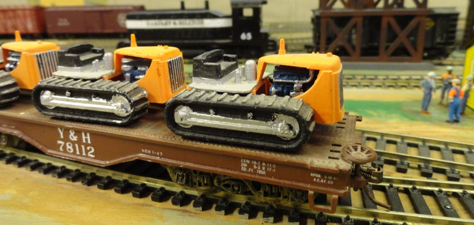 The HO scale 16 wheel car has been available for several years, but they were prone to derailments. I did a couple things to fix that. First I cut away most of the under floor bracing to make room for a good chunk of steel weight held with Walthers Goo. And I used Athearn 6 wheel buckeye trucks with a KaDee #5 coupler box cemented together between the car bottom and the truck. That was about the right size for proper spacing for correct car coupler height. I cemented a brass 2-56 nut in the original hole for a pivot mounting for the truck and a 3/16 “ long 2-56 screw to mount the buckeye trucks. The car weighs 4 oz.