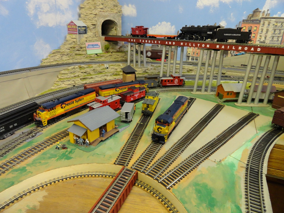 Razing the round house is something most model railroaders never do. Just look at what can be found at a flea market where the craftwork of some old gray head is for sale, really a sad sight. I am glad that I won’t be selling my work of over 100 hours. After deciding where to hide it I will be able to use it again when the spirit moves me. Really once you get used to it, you already know what is on that track behind the roundhouse, just look at the car cards of the train on the drill track. After trying this a few weeks, I restored things back the normal way. Although things are crowded it looks better with the roundhouse, coal dock and water tank in the engine facilities.