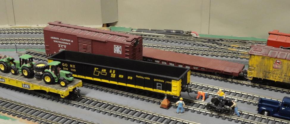 This scene was set in my yard but it could also work on the team track where I witnessed it first-hand in my home town a few years ago. I wonder how many modelers have a Tuscan red Akron Canton and Youngstown boxcar.