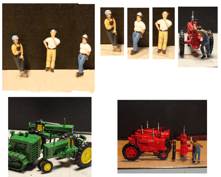 Here are shots of photo work ups for this story – the tractors and figures are 1/87 scale.